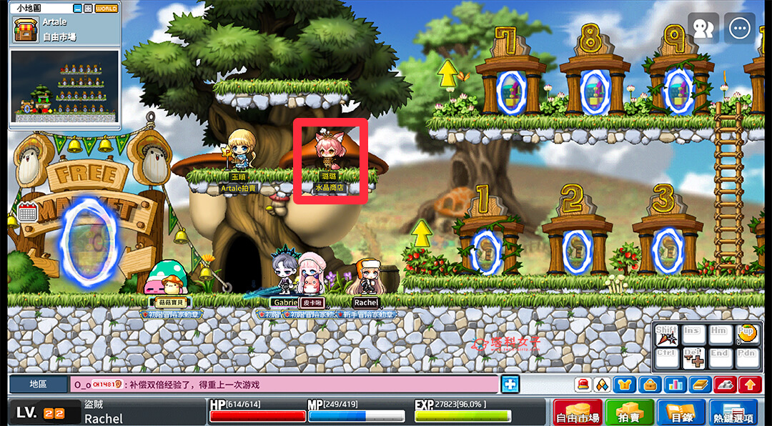 首先,請點擊遊戲畫面右下角的「自由市場」,然後與水晶商店「璐璐」這位 NPC 對話,點選「我要使用購物商場」。