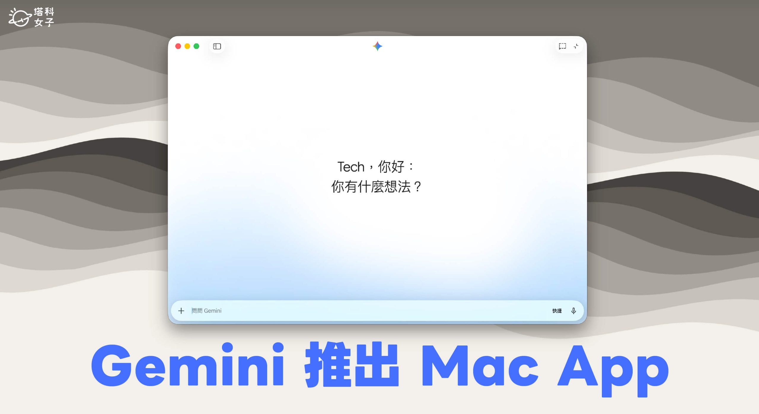 Mac 上的 Gemini App 主打「隨時叫得出來」,目前我們可以透過以下三種方式快速開啟 Gemini: