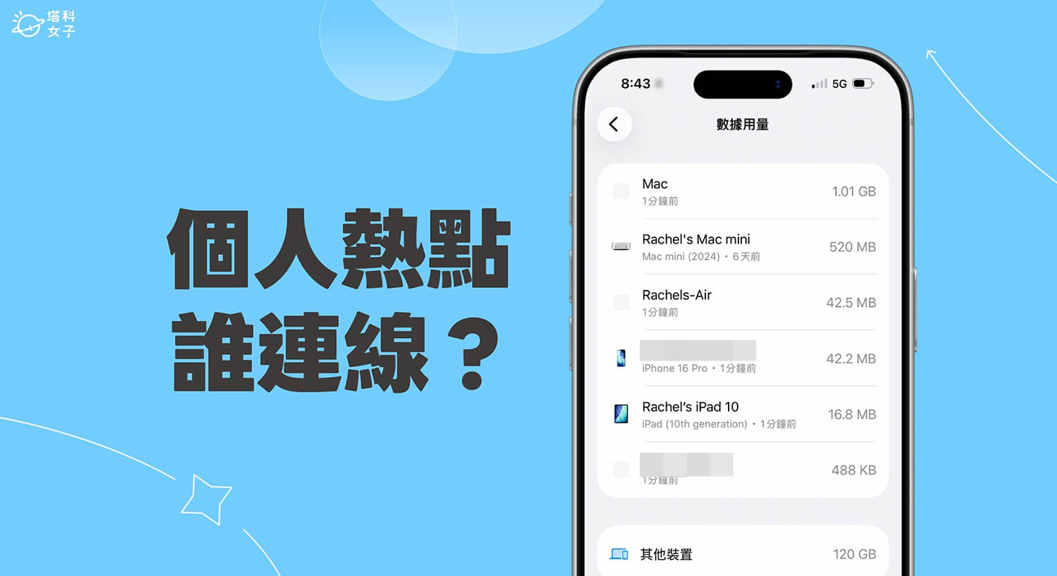 如果你常開啟 iPhone 個人熱點並分享網路給 MacBook、iPad,或是偶爾讓家人、朋友連一下網路,那你應該會很想知道:到底是誰在連你的熱點?各自用了多少行動網路用量?